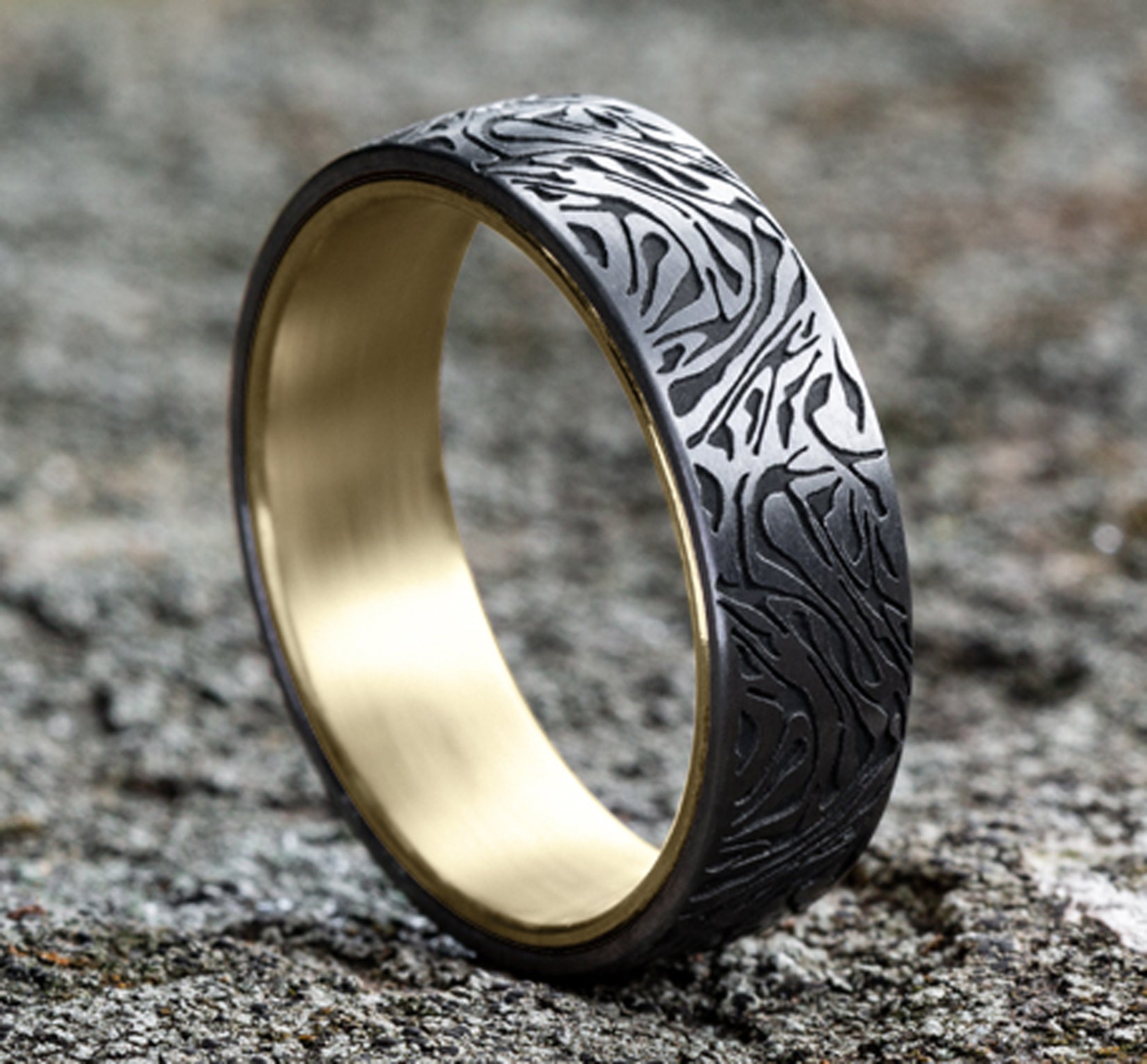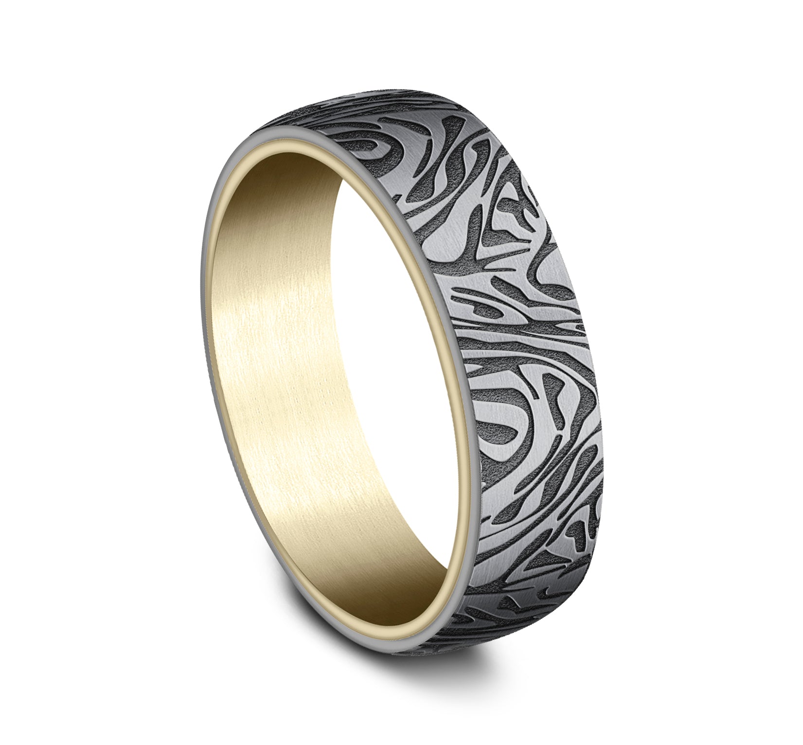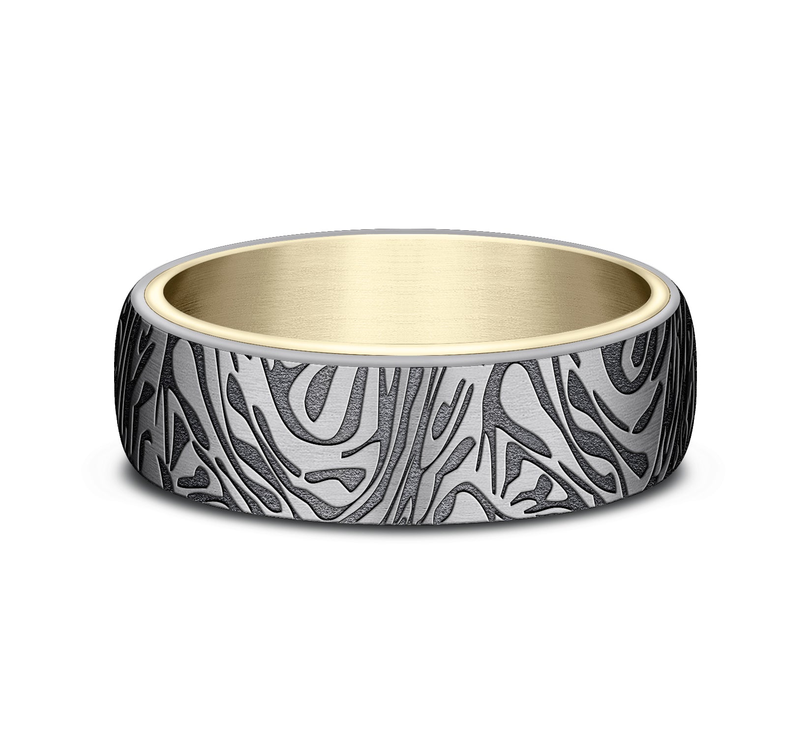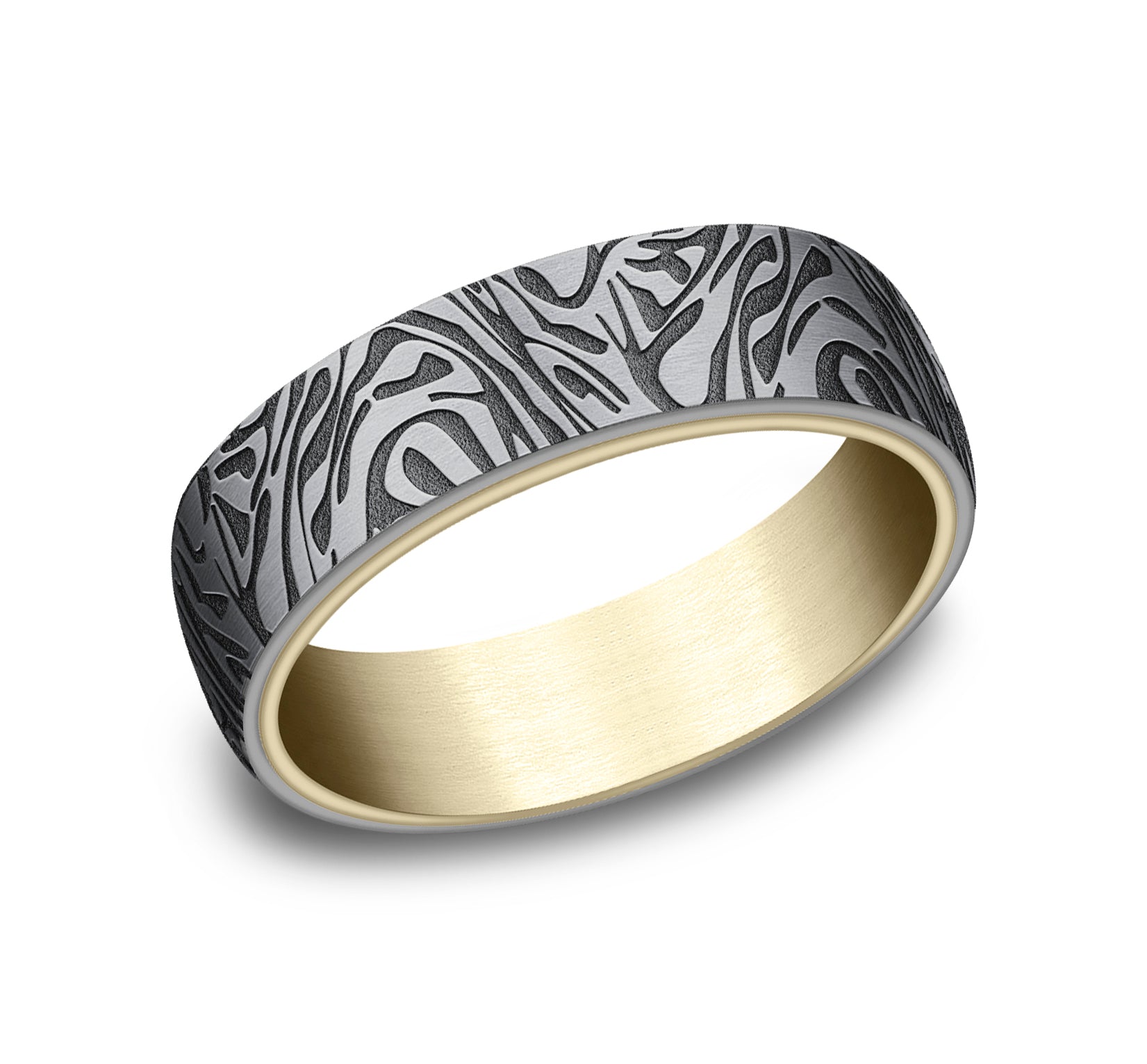 6.5mm, Comfort fit 14K Yellow and Grey Tantalum Faux mokume pattern