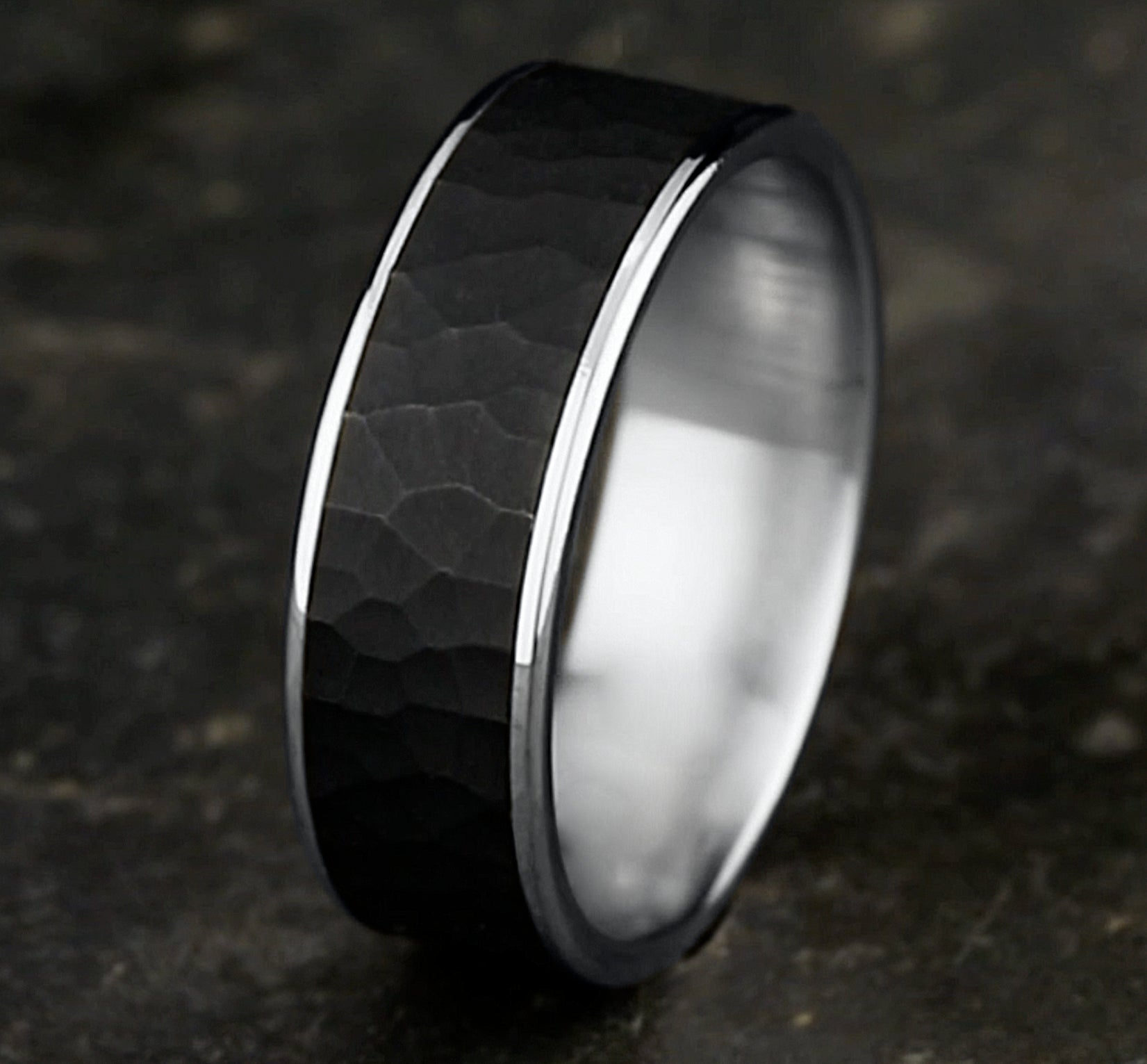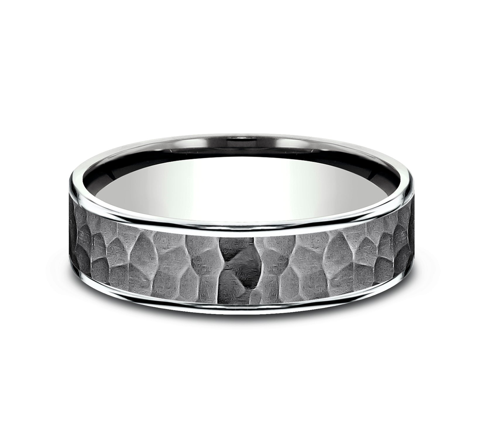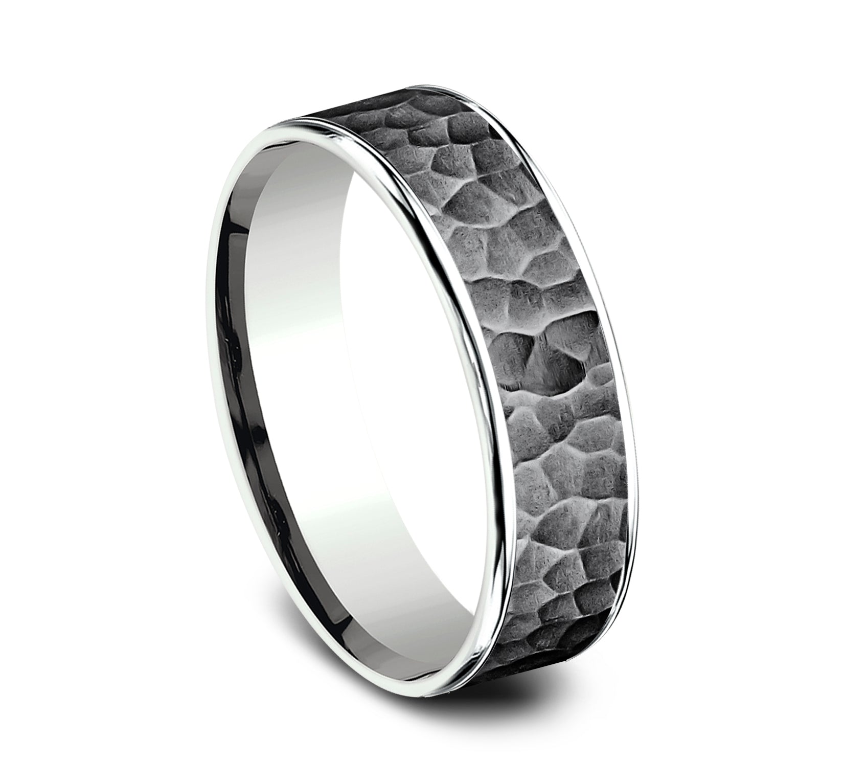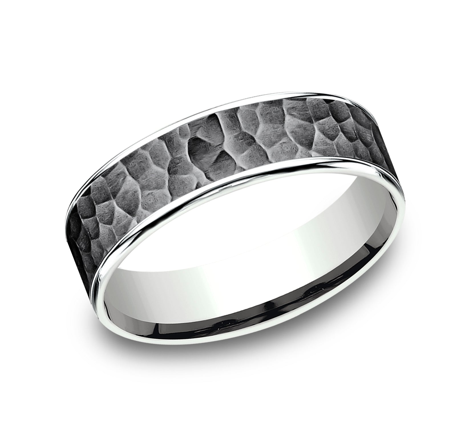 6.5mm, Comfort fit 14K White Gold and Darkened Tantalum Hammered center, polished thin edges