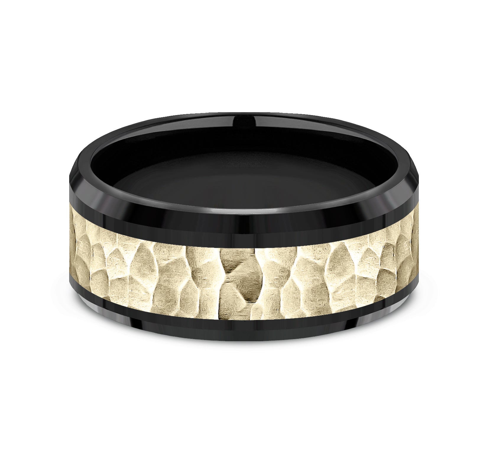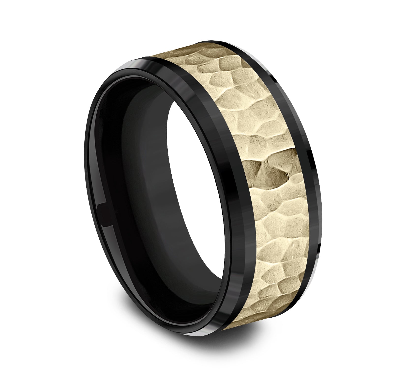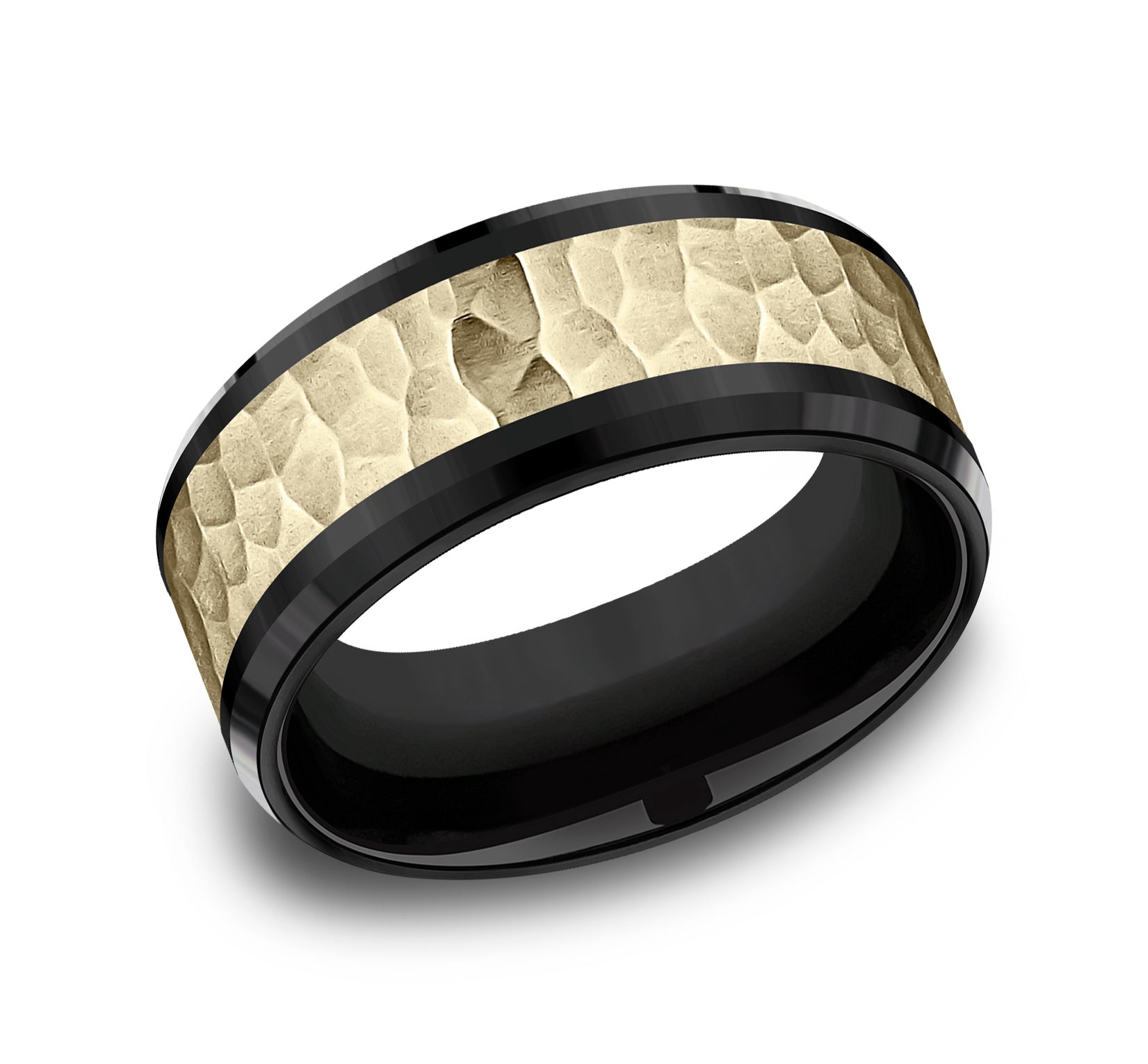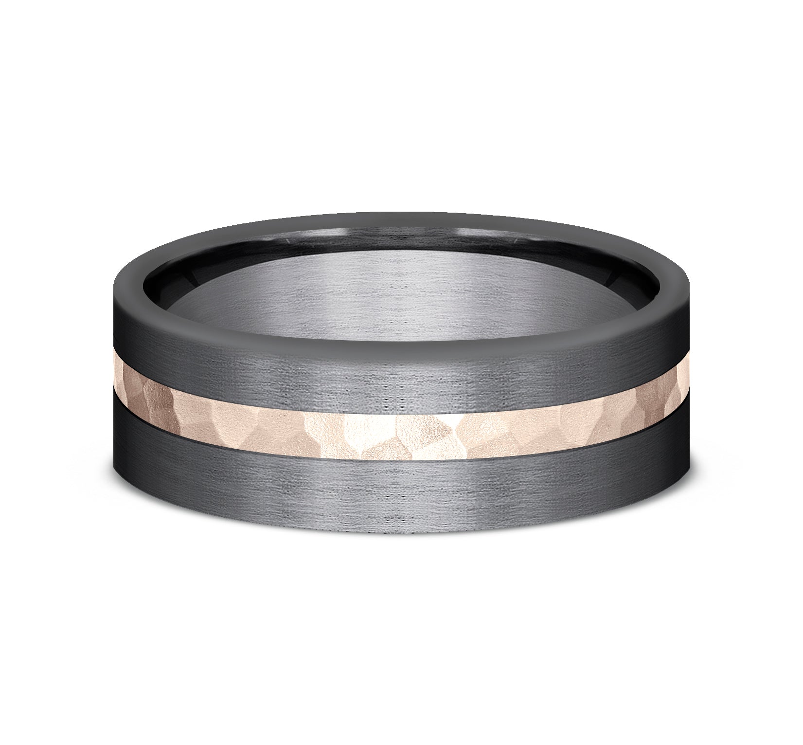 6.5mm, Comfort fit 14K White Gold and Darkened Tantalum Hammered center, polished thin edges