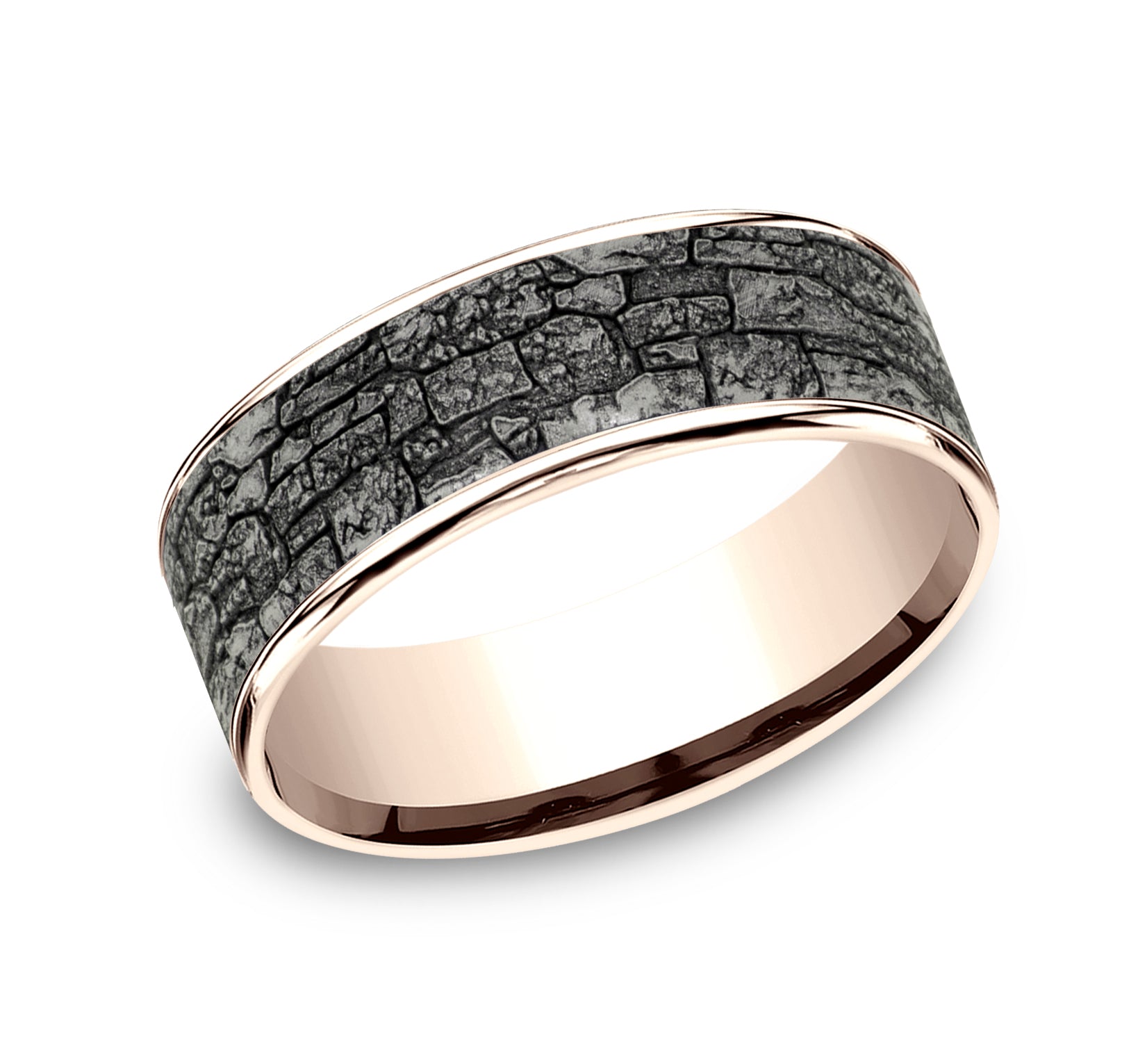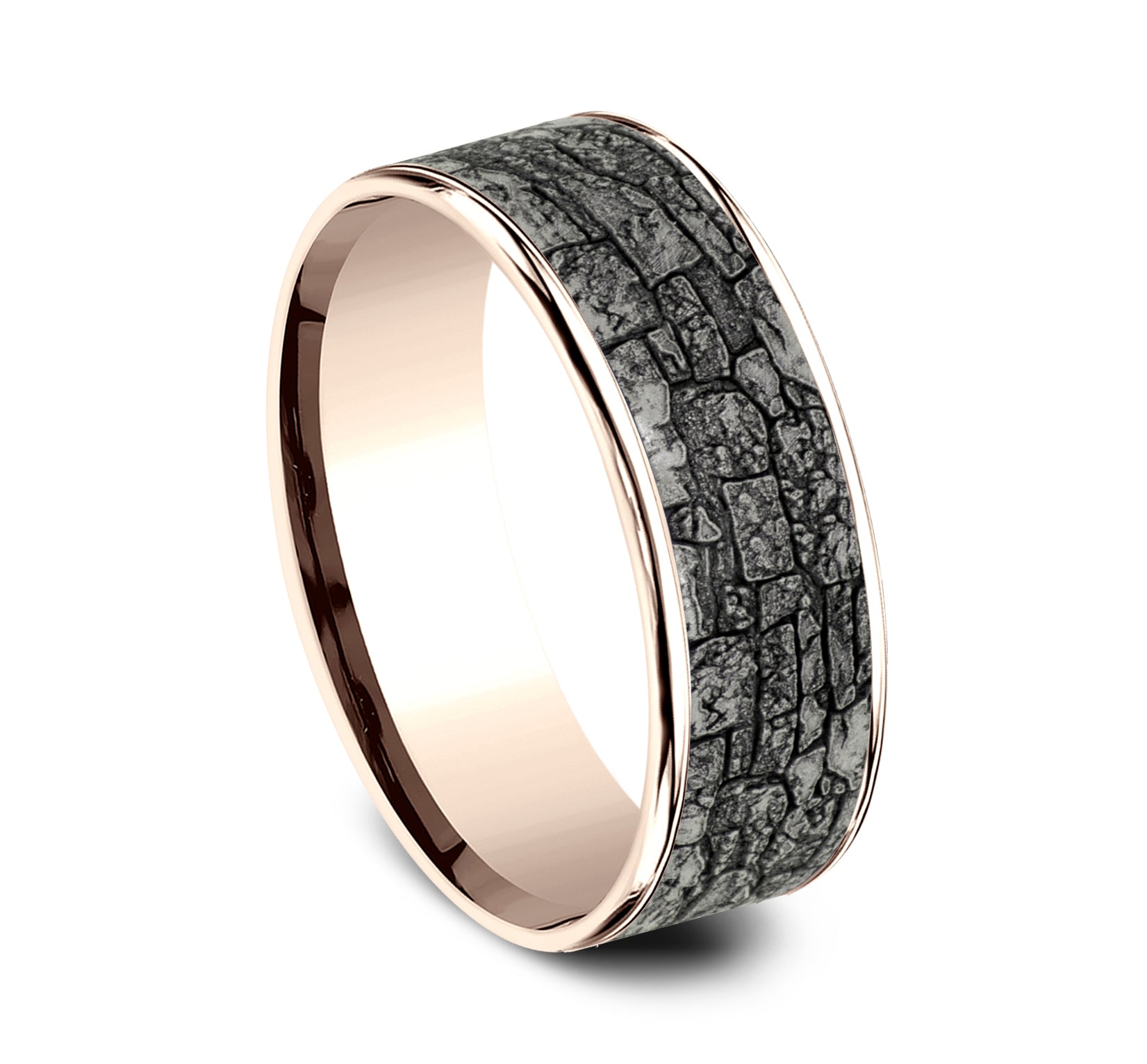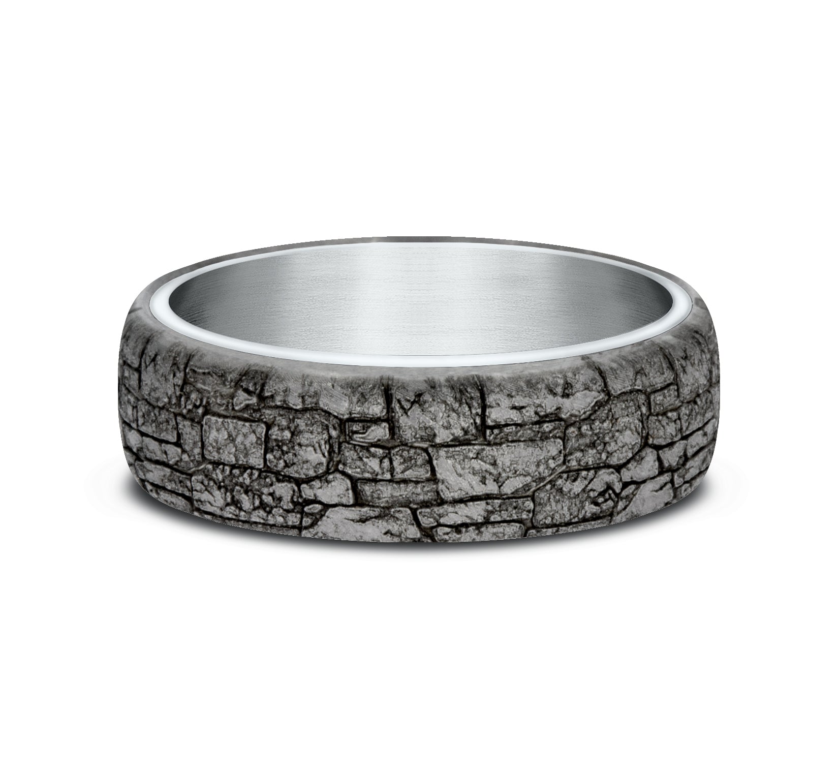 6.5mm, Comfort fit 14K White Gold and Grey Tantalum Stone wall pattern