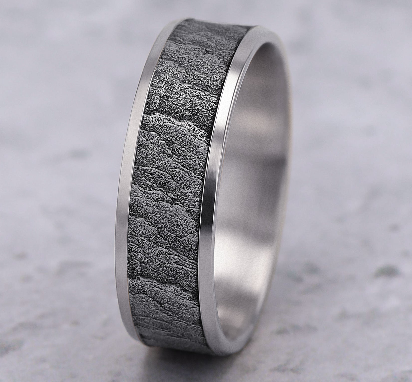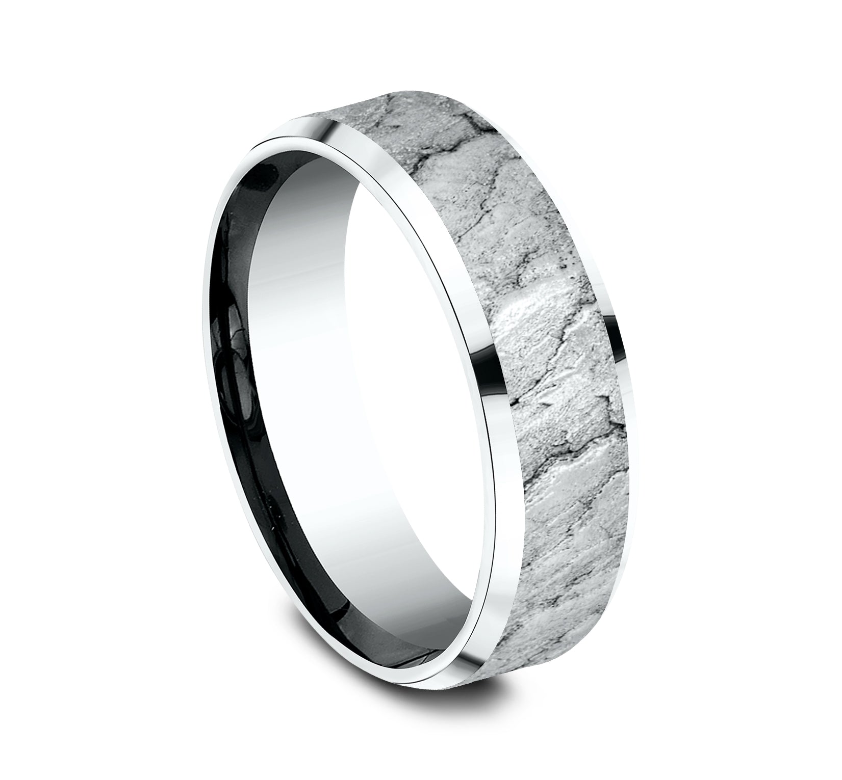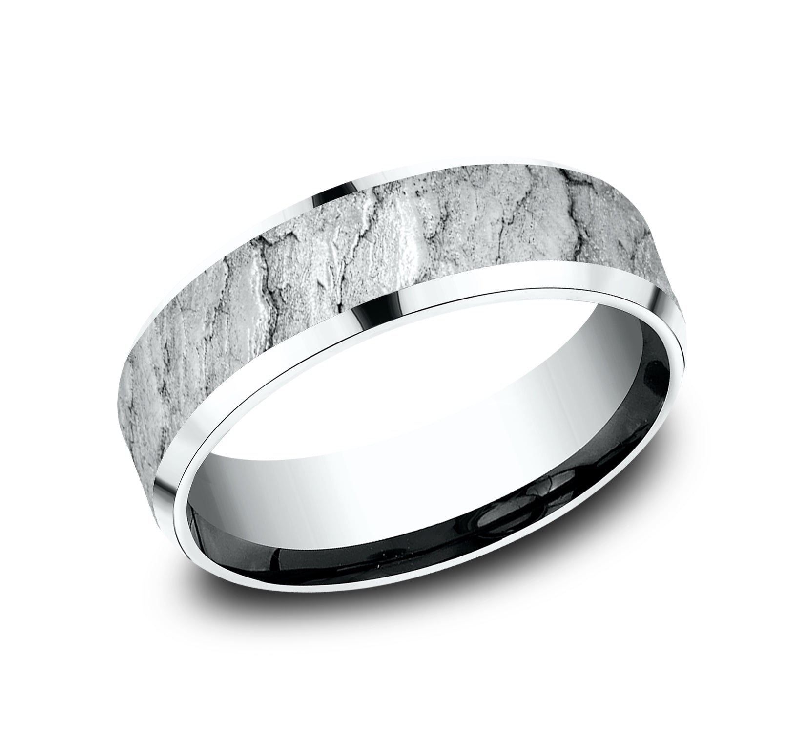 6.5mm, Comfort fit 14K Rose Gold Lava rock textured center, polished round edges