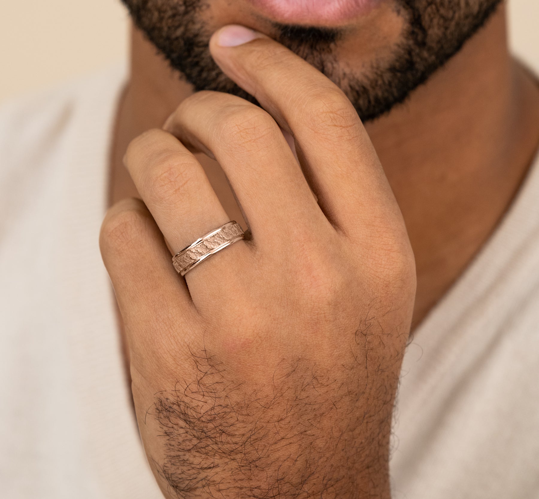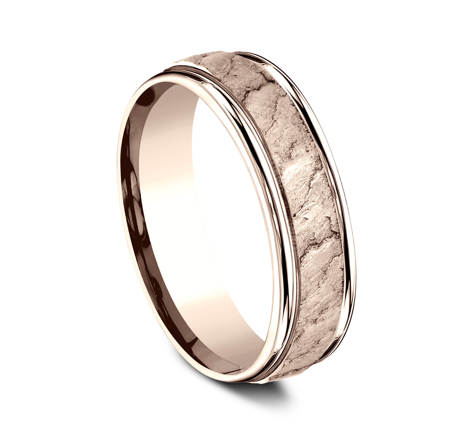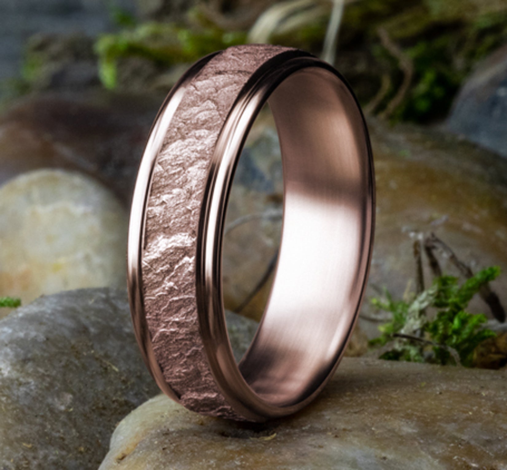 6.5mm, Comfort fit 14K Rose Gold Lava rock textured center, polished round edges