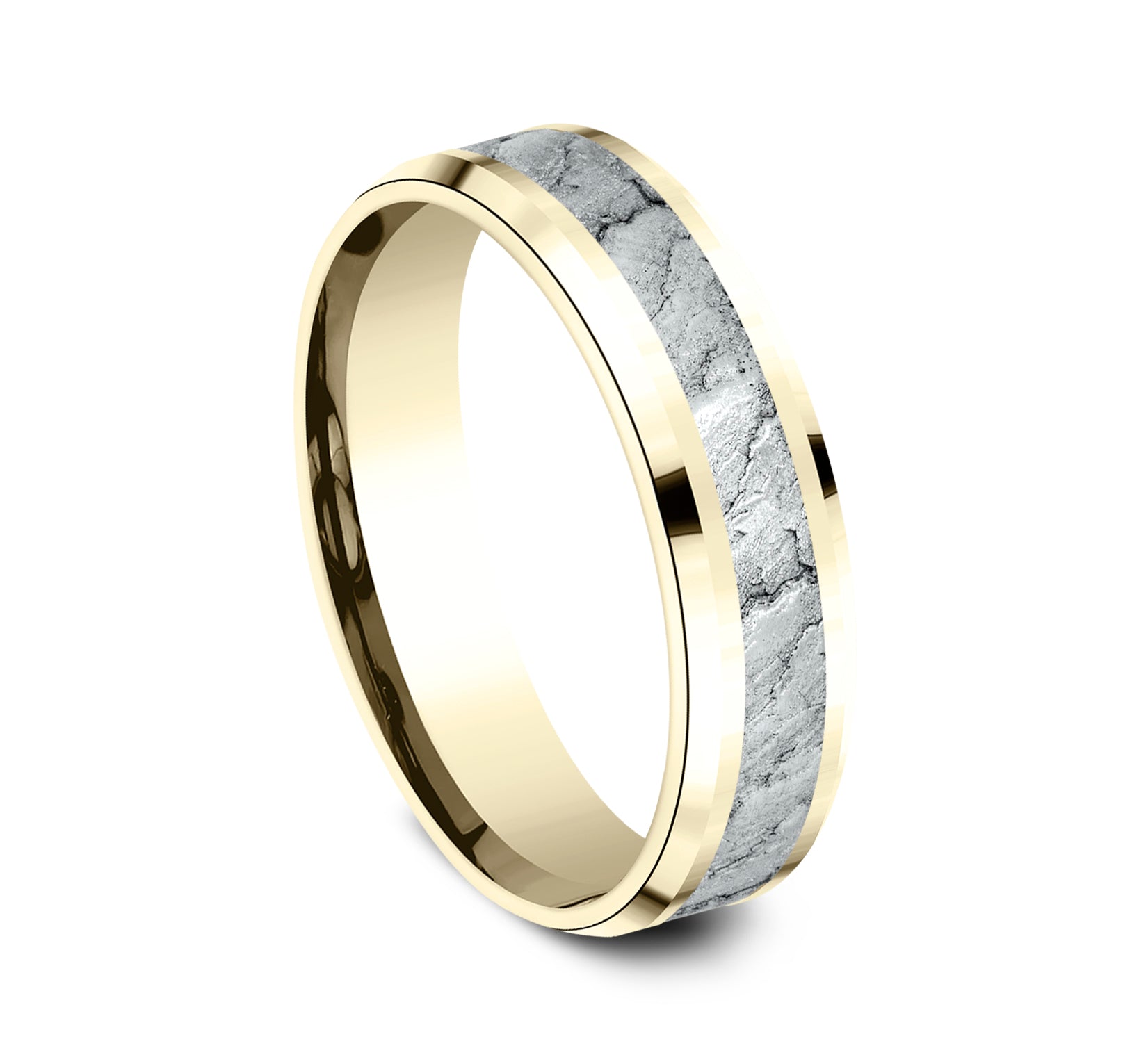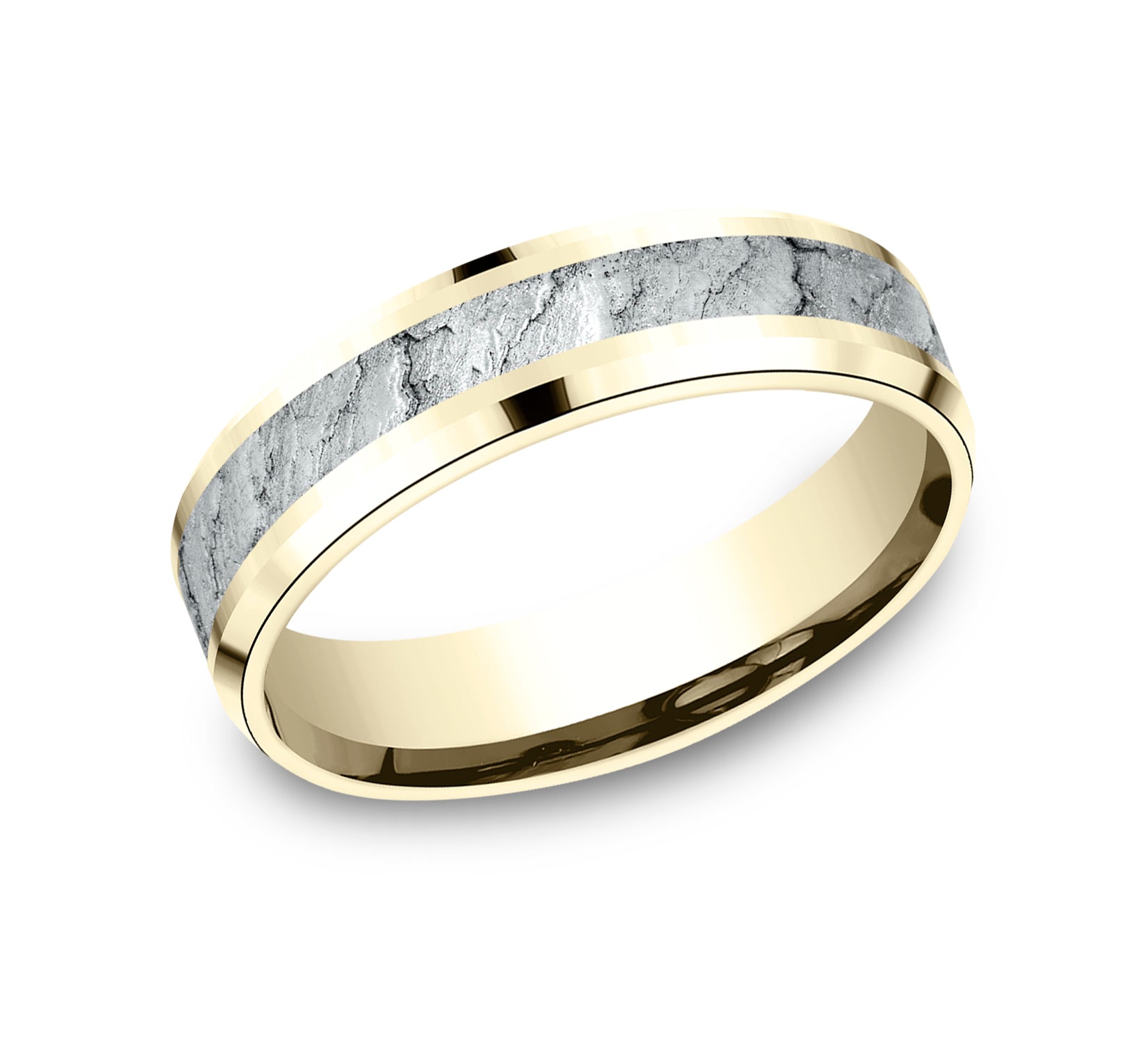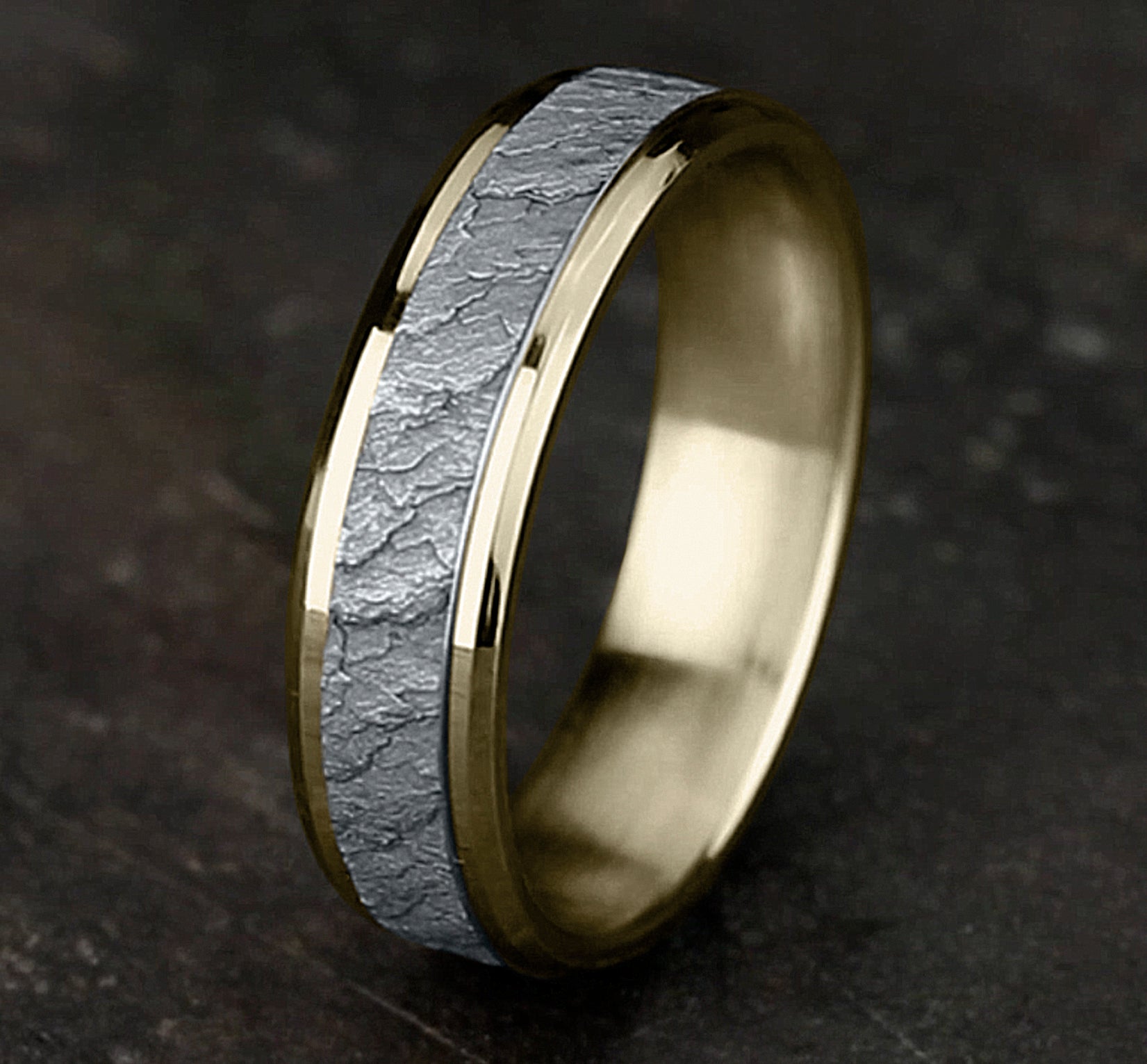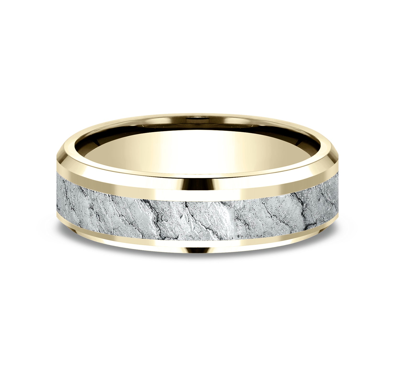 6.5mm, Comfort fit 14K Rose Gold Lava rock textured center, polished round edges
